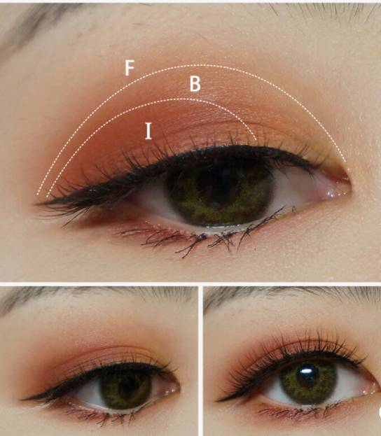 用两个颜色中和一下,涂在下眼睑,下眼影也完成啦。