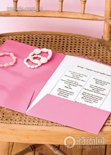 试穿衣服时,顺便记录下适于搭配的配饰(丝巾、鞋、包等),并列出不同清单,比如适合夏日周末清单、适合冬季工作套装清单等。当你匆忙打包行李或者没时间仔细考虑衣服搭配时,这个搭配清单就能派上大用场了。