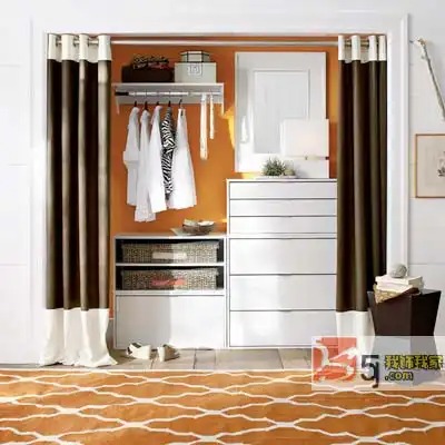 使用悬挂式收纳袋能更有效利用空间。在衣橱外面粘一排衣钩,用来悬挂前一天穿过但还不打算洗的衣服,能避免穿过的衣物扔得到处都是的杂乱场面出现。