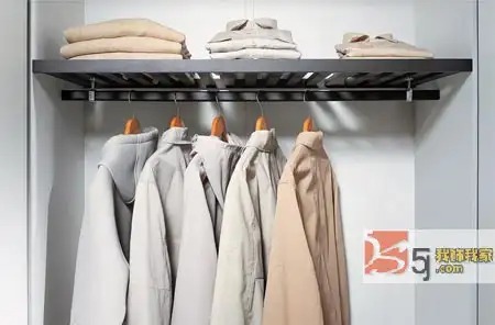 2、尽量不要设置挂长衣的空间。挂放长衣十分占用空间,如果长衣不是特别多或者叠放起来也可,最好不要设置这样的空间。另外,很多人把衣柜从头到底都设置成挂放空间,往往挂放太高,不易拿取,不如在上方设置一个顶柜更实用;