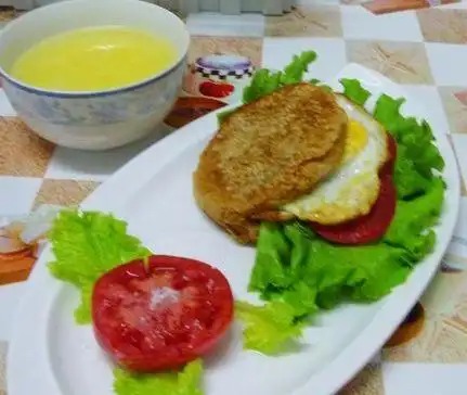 火腿番茄奶酪鸡蛋卷 | 绿豆薏米豆浆 | 西多士 |