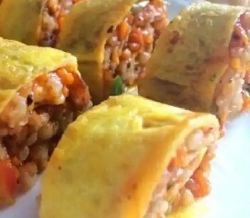 豆渣蛋饼 | 牛油果金枪鱼寿司 | 鸡蛋肉松蔬菜卷 |