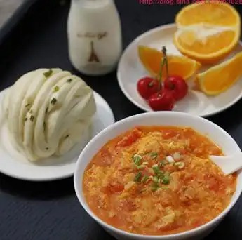 南瓜栗子米糊 | 虾肉番茄蛋卷 | 孜然辣汁馒头 |