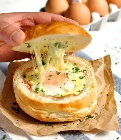 火腿芝士面包盅 | 红枣小米豆浆 | 紫薯米糊 |