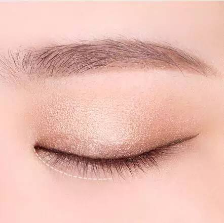 STEP4:香槟色的珠光眼影于图中白色虚线范围内晕染。