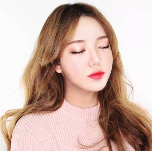 STEP9:蔷薇红色的唇膏涂抹于双唇内侧,然后用手指向外均匀晕染开。