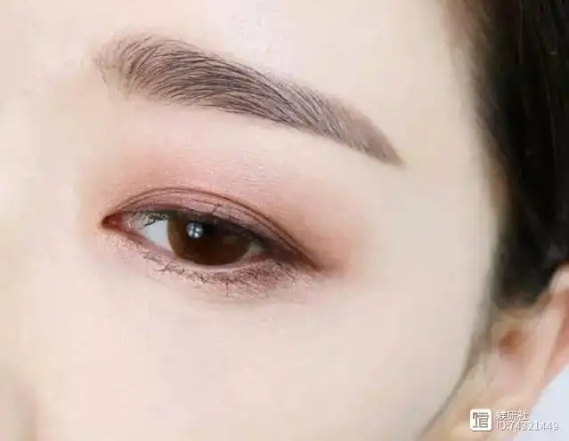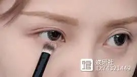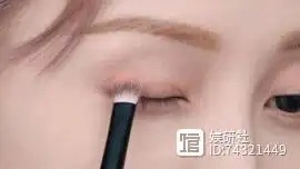 2、再选用一种比打底色(就是上图的粉色眼影)稍深一点的粉色用眼影刷涂抹在眼尾的位置。