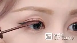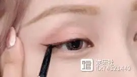 5、用黑色的眼线液笔画出眼线,记住一定要画内眼线,不然会留白就看起来很奇怪啦,特别记住眼线笔一定要用不晕妆的,不然过一会就变成了熊猫眼,眼妆就毁了。如果实在会晕妆的话可以尝试画半尾眼线,晕的几率就会小很多了。