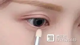 4、用小号的眼影刷沾取米白色的珠光眼影画出bulingbuling的卧蚕让双眼更大。