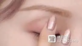 3、用米白色的珠光眼影用手涂抹在眼睛中央的位置点亮眼中,让眼睛有立体感更加有神。