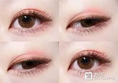 1、用粉色的眼影大范围的涂在眼窝和下眼睑的位置,大概就是睁开眼睛比眼皮高一点点的位置就OK了!