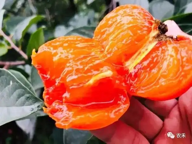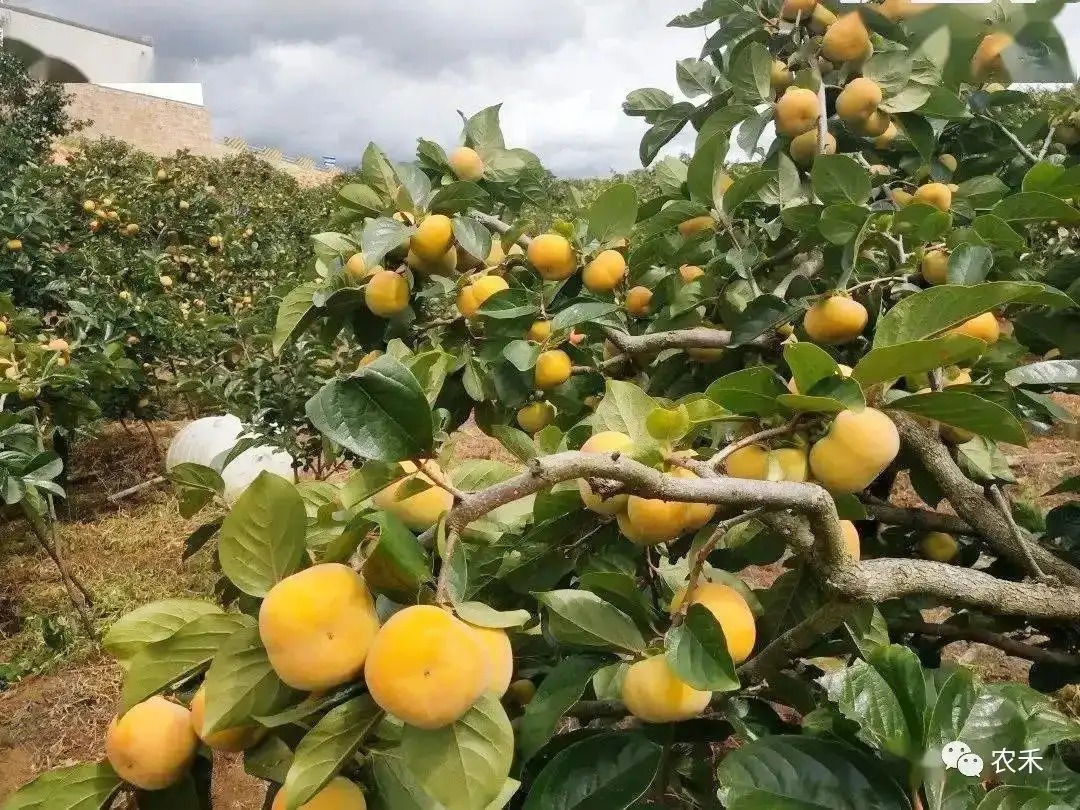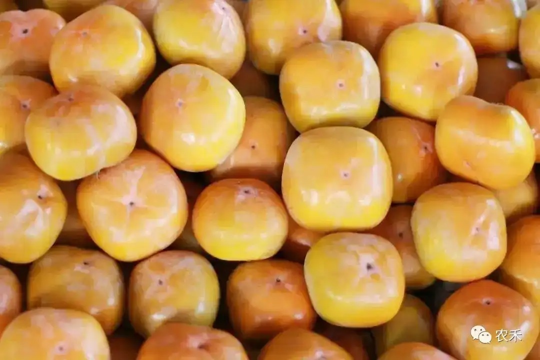 甜柿特点是个大色艳,身圆底方,皮薄肉厚,甜脆可口,果肉细腻籽少,成熟后可摘下来直接尝鲜。