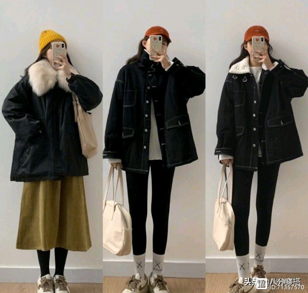 还有不少年轻女孩比较偏爱一些俏皮帅气的穿搭造型,黑色牛仔外套中性飒爽,选择带有毛绒内衬的保暖性更强一些,搭配上大火鲨鱼裤勾勒双腿线条愈发精致洋气,时髦利落,一双俏皮的长袜,一顶颜色跳跃一些的帽子,就可以点亮整体的造型,让我们大家穿出时尚穿出气质。