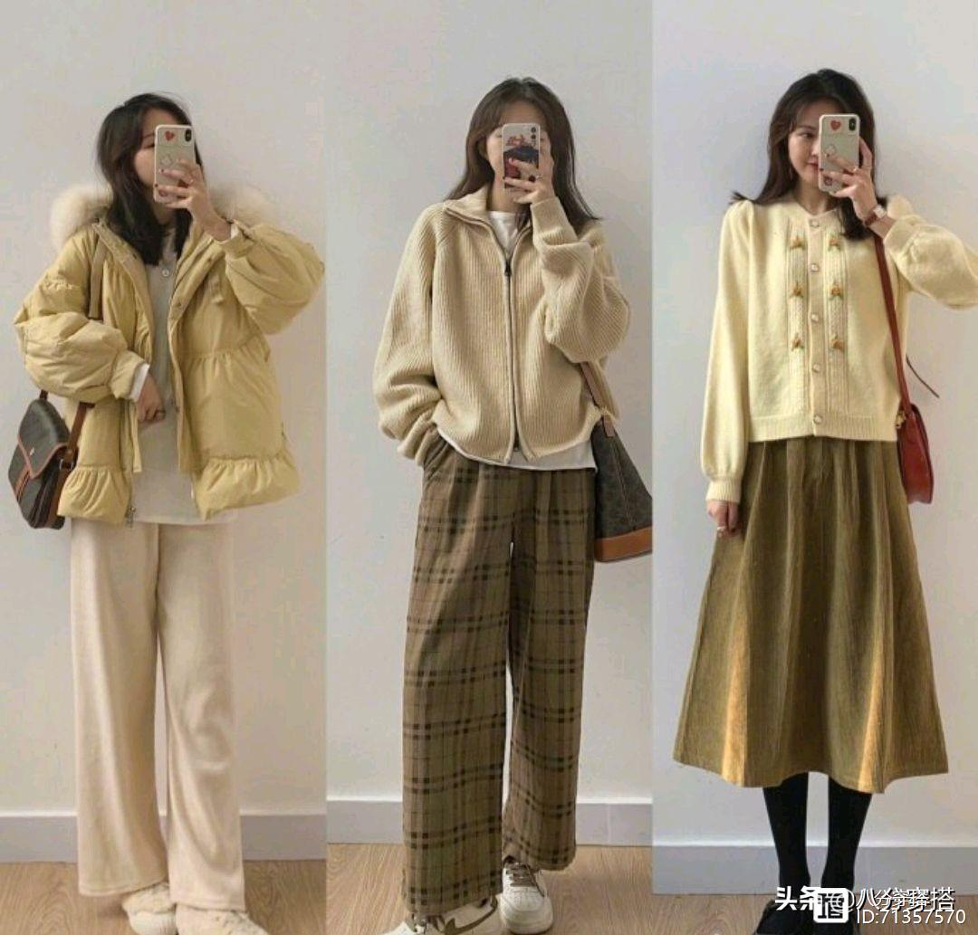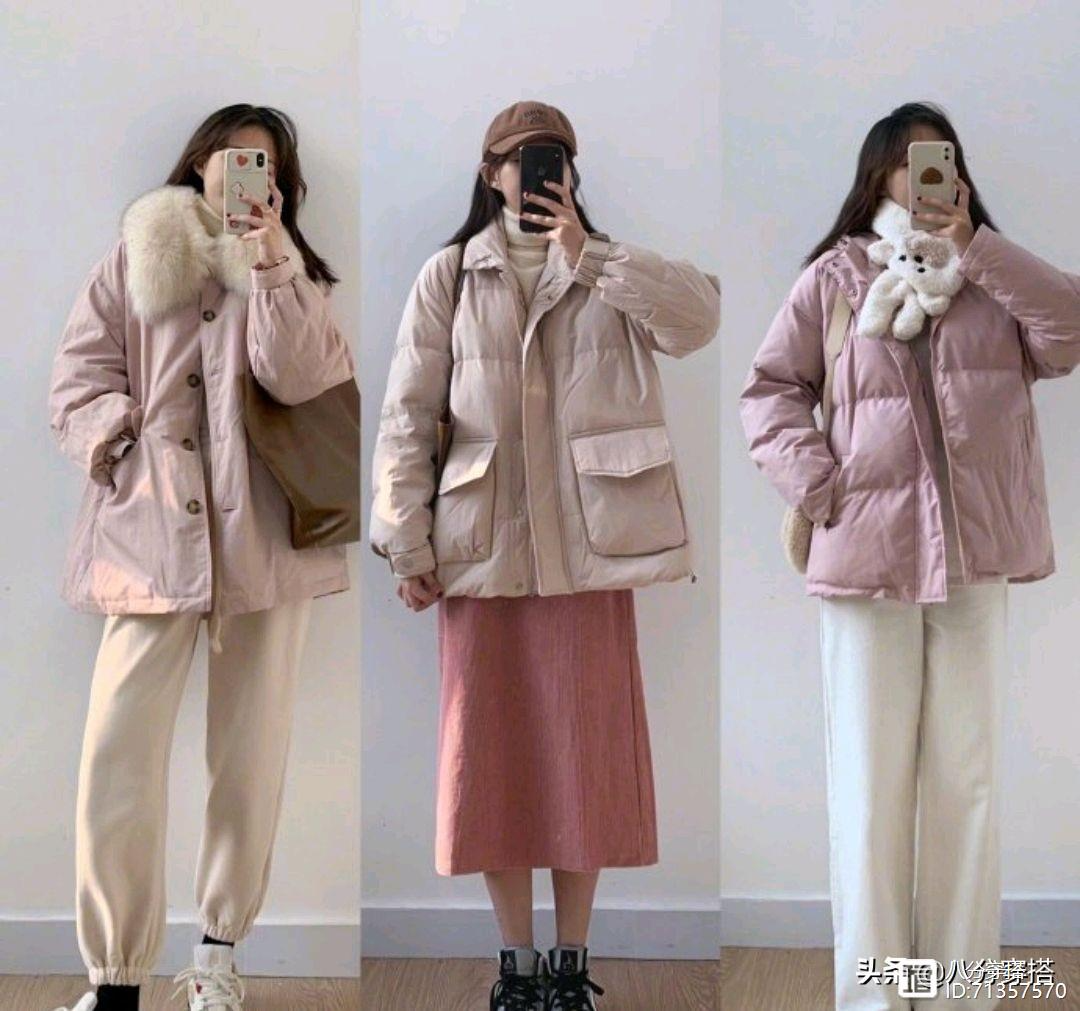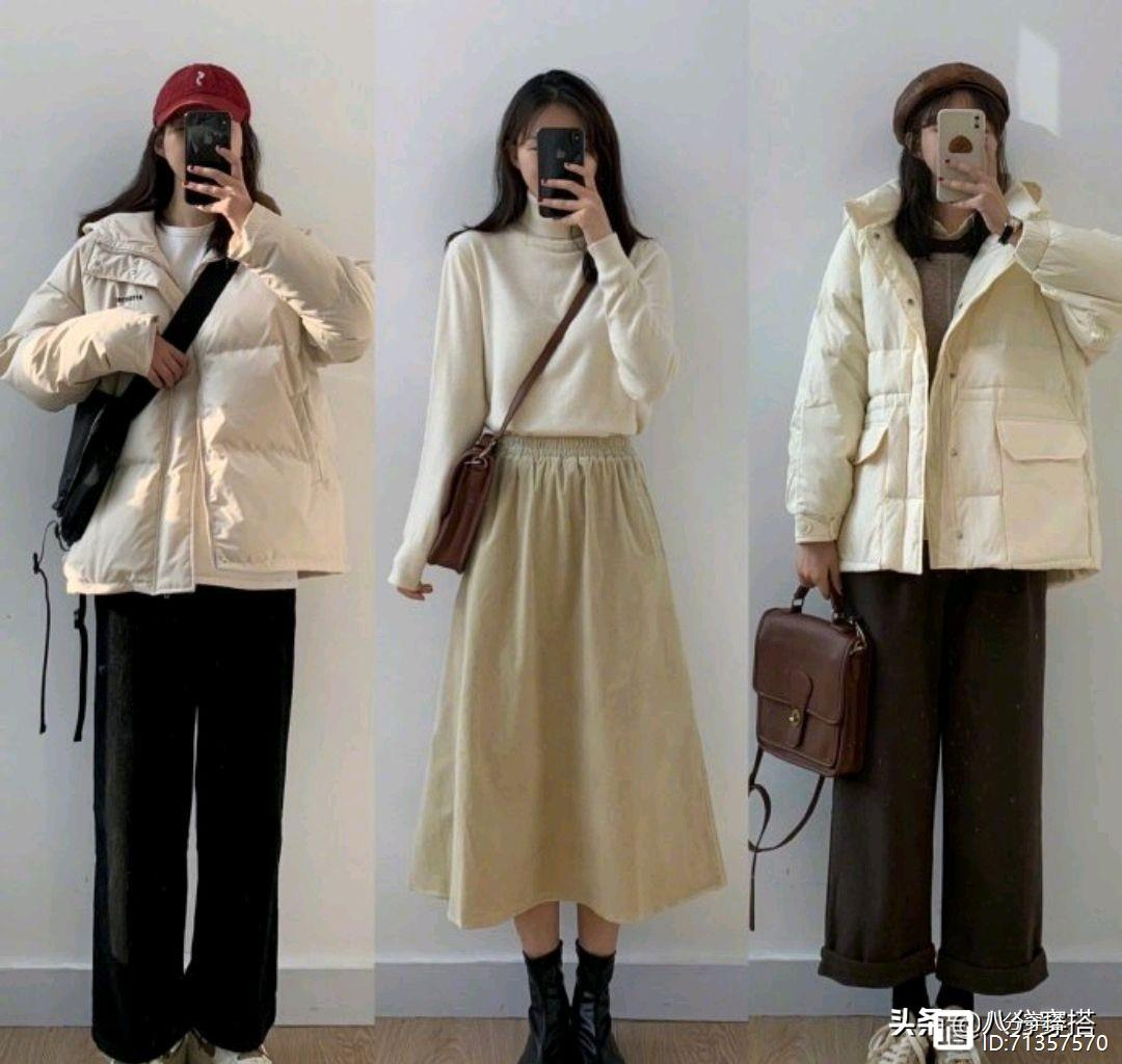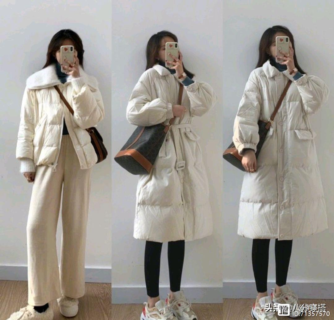 放我们大家不知道怎么搭配的时候,模仿是最直接最快速的,靠自己喜欢的风格,借鉴,她们的穿搭方式或者直接照穿都可以,例如下面的穿搭,白色圆领卫衣搭配一件温柔的奶油色羽绒服保暖低调,舒适随性,下半身在搭配上黑色阔腿裤慵懒大气,还可以遮住腿部的不足之处,,显瘦时髦又有气场。