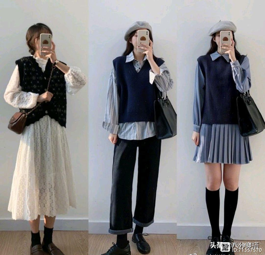 叠穿也是比较常见的搭配方式,增加整体造型的层次感,同时还兼顾了整体的时尚感,衬衫和针织衫叠穿是非常常见的,气质上更加知性干练一些,蓝色的条纹衬衫,内搭藏蓝色的针织马甲简约利落,清爽舒适,在搭配上黑色的阔腿裤慵懒休闲,彰显著年轻女性的俏皮与温柔魅力,戴上灰色的贝雷帽,更加的摩登复古,时尚感爆棚。