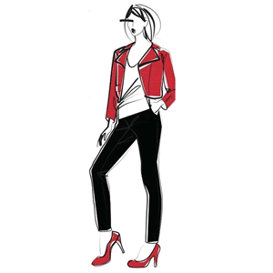 图案面料:适合个性化的条纹,格子、几何图案、动物毛皮类图案,抽象类图案。灯心绒、棉、羊毛、皮革、闪光面料及每一年流行的面料都适合前卫型女士。适合用与众不同的色彩搭配来突现标新立异的风格