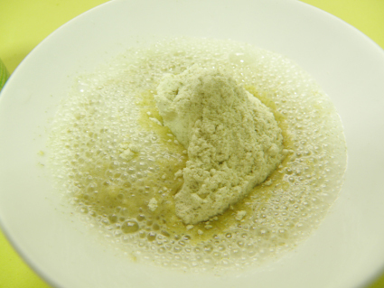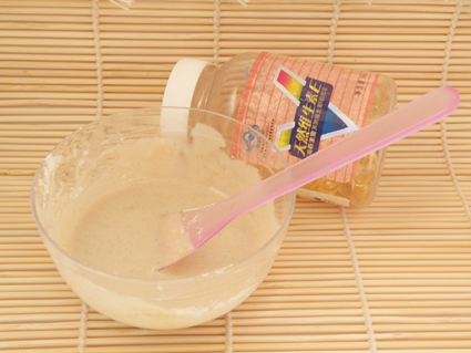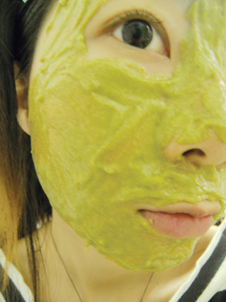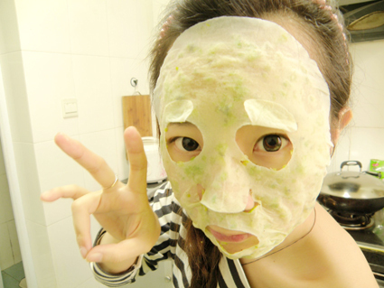 制作好之后,投入面膜纸,抛开后使用(要有心理准备,不管是味道还是样子,
