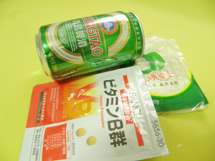 准备:啤酒,绿豆粉,一颗维生素B(维生素B没有也不要紧)