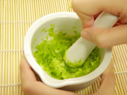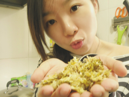 的菜渣拿掉,剩下细致的残渣,就可以敷脸了哦。