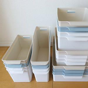 2、收纳盒:深度较浅的收纳盒,一般用在抽屉里,组合搭配使用。可选购一体式收纳盒或单独购买,自行组合。