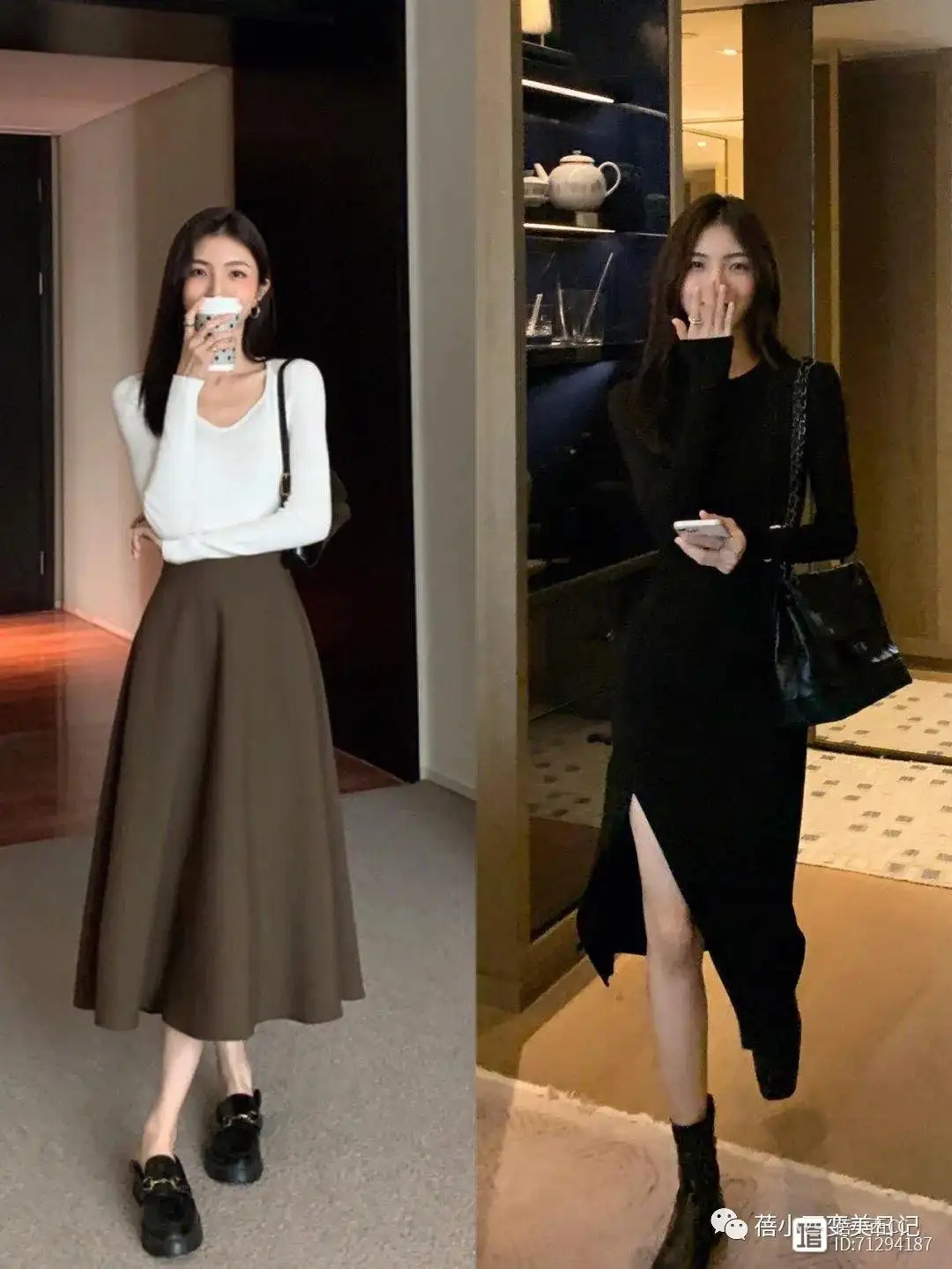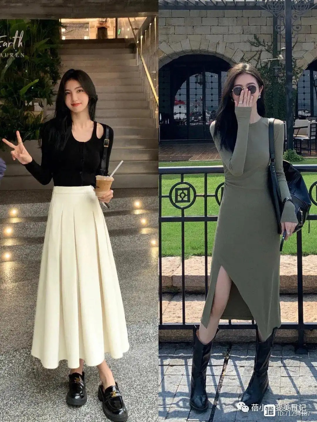 在秋日仍然要学会穿裙装,你看这些小姐姐通过用过膝长裙来凹造型,都展现出了独特的魅力,长裙的搭配隐藏大腿赘肉,露出脚踝也很显瘦,搭配乐福鞋或者是靴子,都很时髦大气呢。
