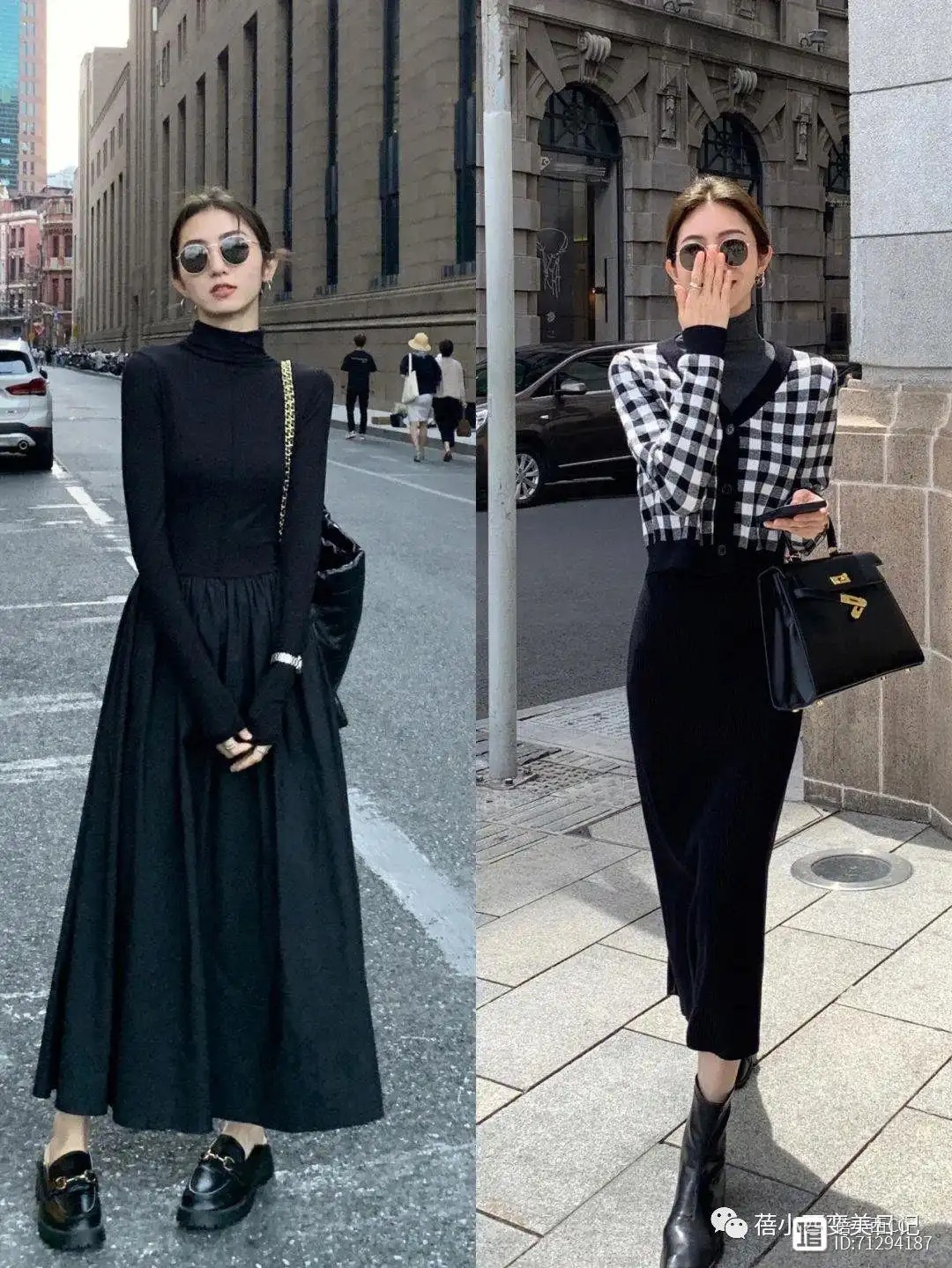 在秋天针织单品也挺流行的,这种针织衫或者针织连衣裙穿在身上都很温柔和知性,修身的剪裁勾勒出我们的个人曲线,也有利于显瘦,这些黑色针织衫或者是针织连衣裙穿在身上都可以凸显出女性韵味。再通过用精致的饰品修饰,女神范十足。