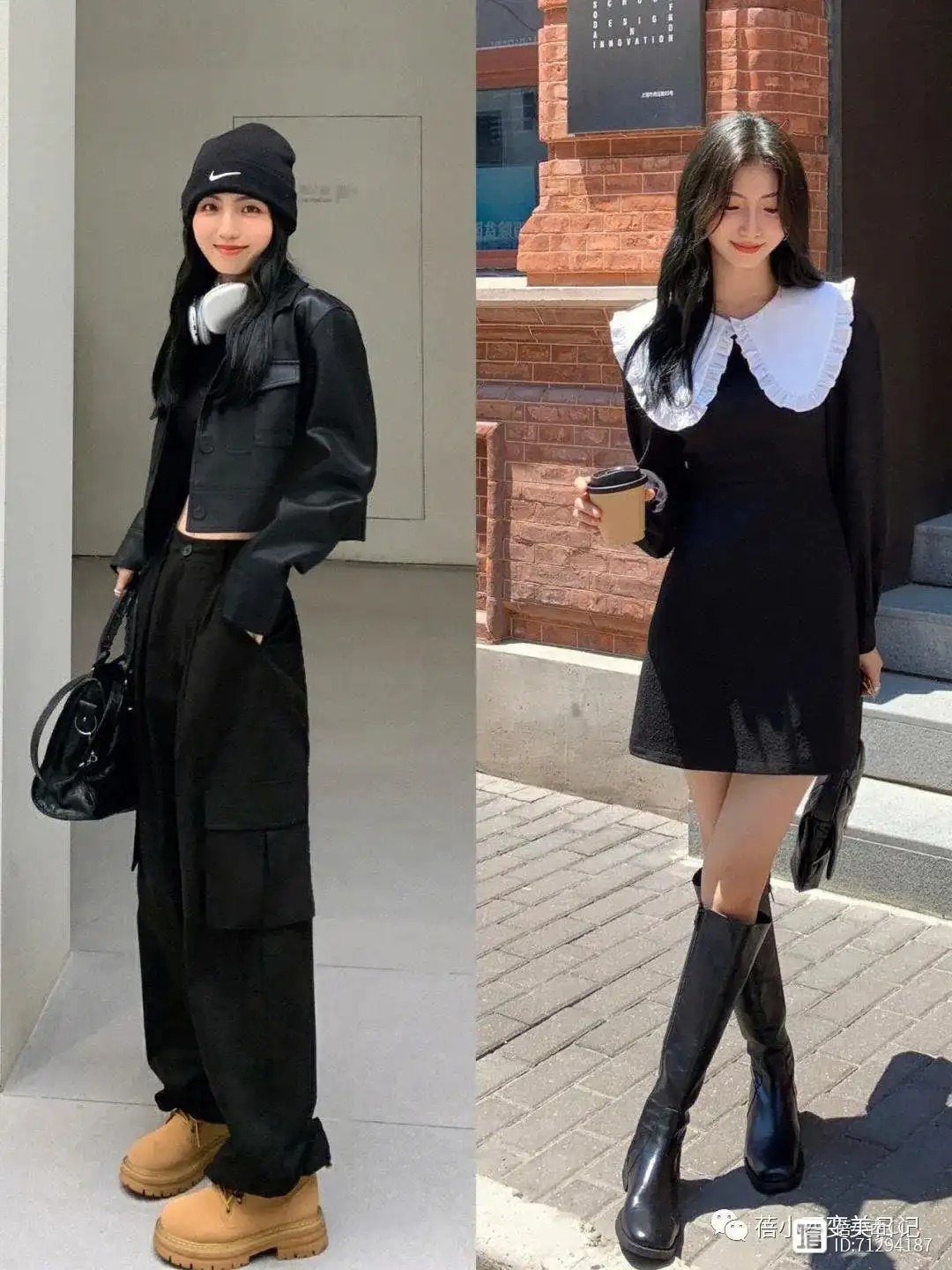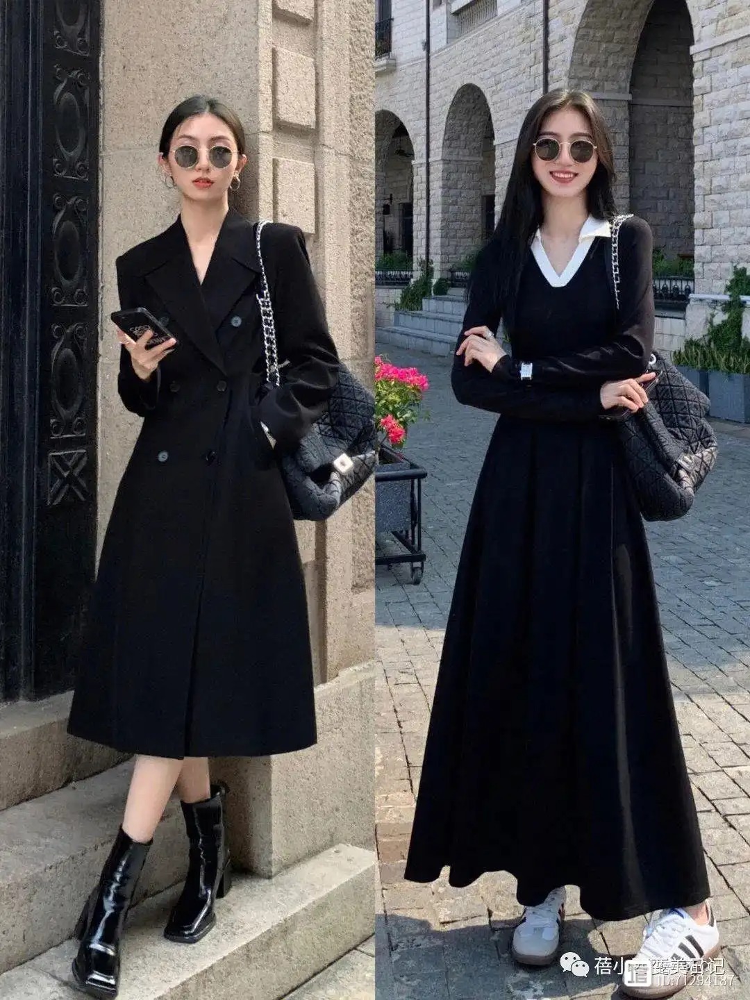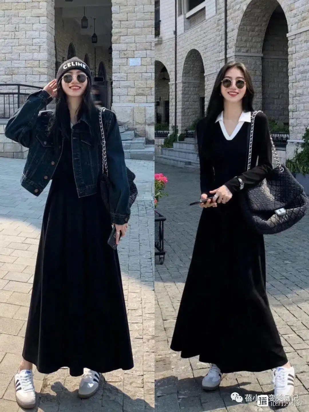 这种小黑裙也属于经典的单品,无论是春夏秋冬穿都ok,长裙搭配更适合秋天,优雅得体,宽松的黑色连衣裙搭配上小白鞋,这样便能够展现出轻盈随性的风格,让这一身搭配看上去没那么沉闷,另外还可以叠穿外套,这样可以展现层次感。像牛仔外套搭配小黑裙也蛮时尚的,优雅中又带着休闲感。