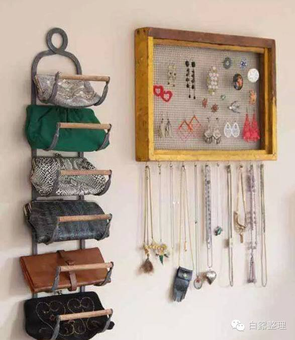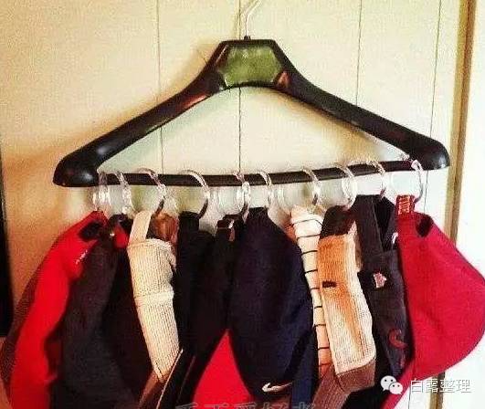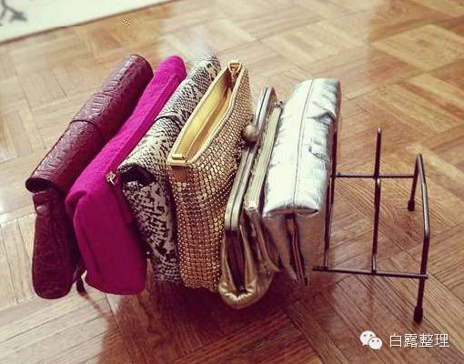 点评:其实这些包包完全可以放在一个抽屉里啊亲,为啥要用锅盖架呢?