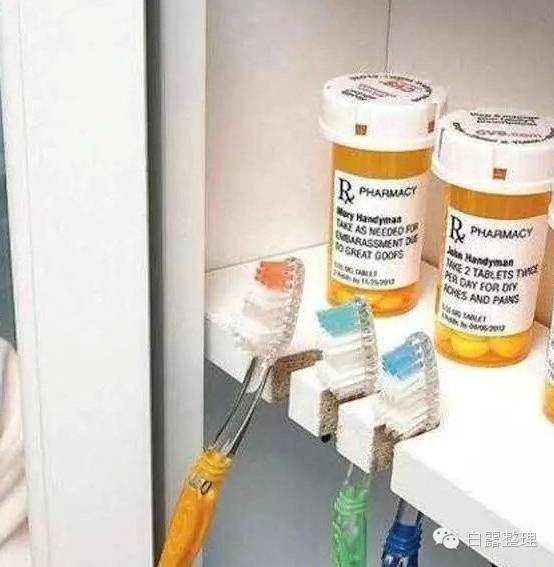 ▼24. 在橱柜上建造自己的牙刷架。