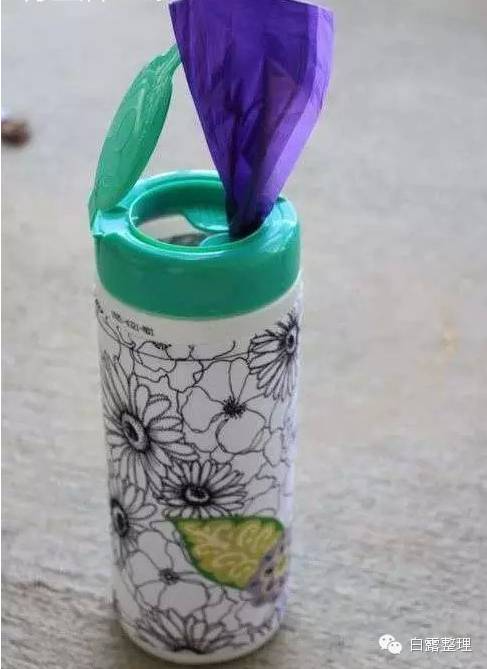 ▼3. 用过的湿纸巾盒子存放塑胶袋。