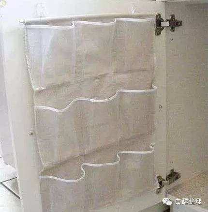 ▼28. 在浴室柜子里放一个鞋袋来放一些浴室用品。