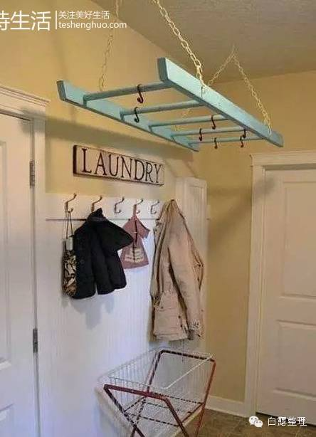 ▼33. 没有地方晾干衣服?把梯子挂起来试试。