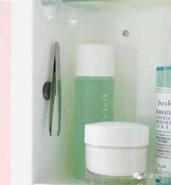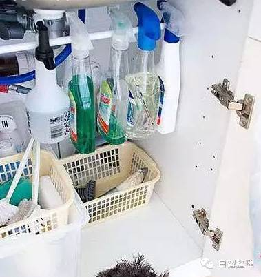 ▼36.在浴室橱柜里加上一支拉杆把喷瓶都挂起来。