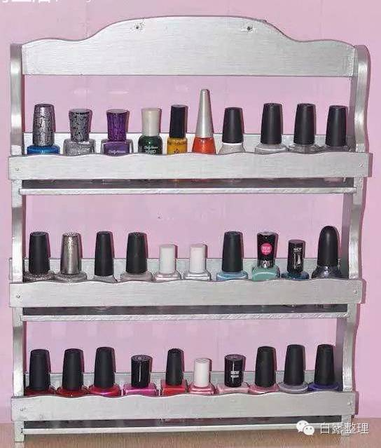 点评:这个是陈列式摆放,适用于美甲爱好者。一般人没有这么多甲油~有的话,用盒子平放也更节省空间~