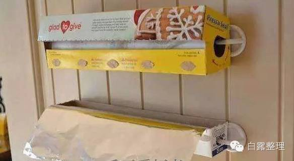 ▼32. 使用挂勾在墙上存放保鲜膜或锡箔纸。