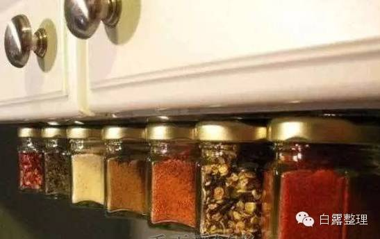 ▼41. 在你的橱柜底下加上磁铁来存放香料。