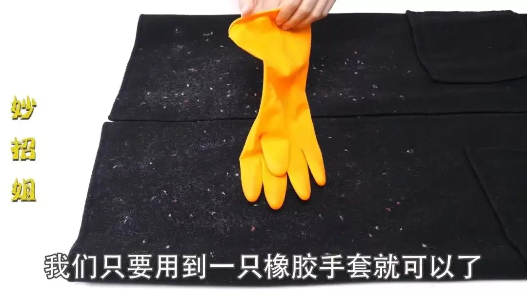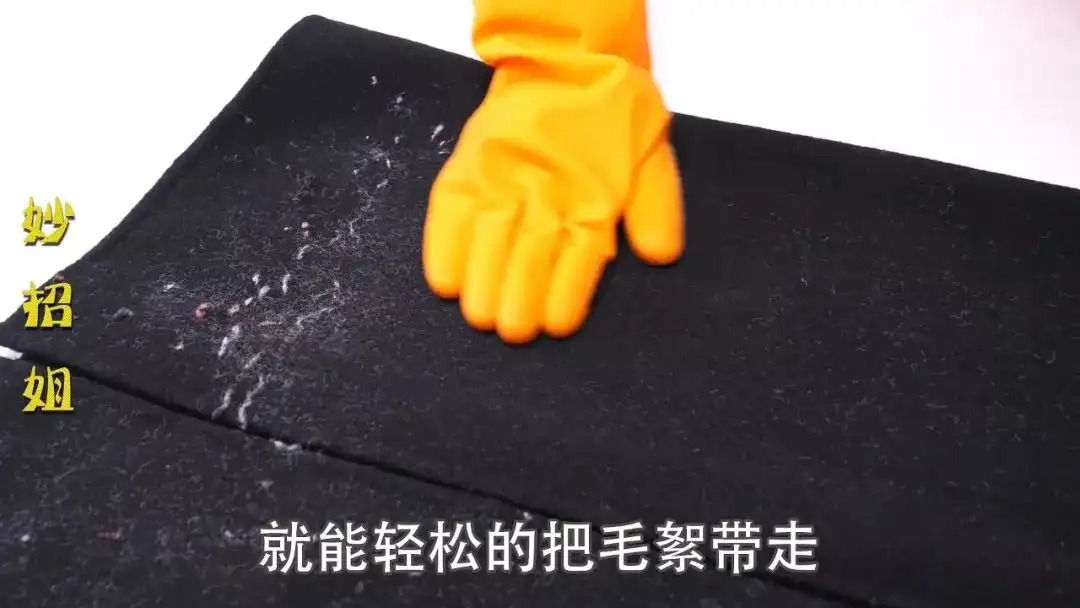 可以看到手套划过的地方,就能轻松的把毛絮带走,这个可比购买的除毛滚筒效果要好多了