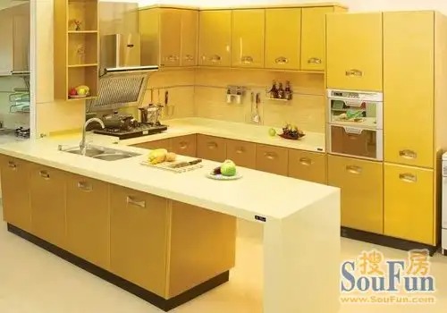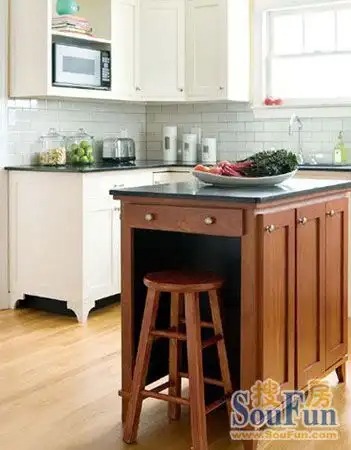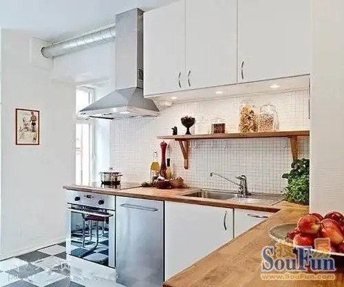厨房地面的颜色及图案也十分重要。素色的地板会清楚现出所有污渍,选择有斑点或图案的地板,能够节省清洁工夫,浅色的地板会令房子更明亮,深色地板则会使房间感觉较暗,而过分鲜艳夺目的图案又会使房间感觉凌乱,所以在小厨房里铺简单的地面永远是正确的选择。