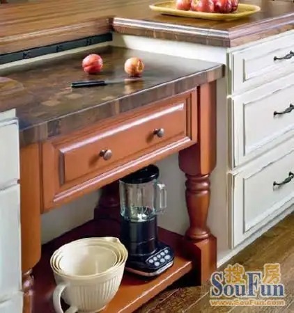 7.专门为准备简餐而设计,台面即为案板,离插座近,便于使用小家电。独立的抽屉可放置刀具,下部空间放些小家电和沙拉碗。
