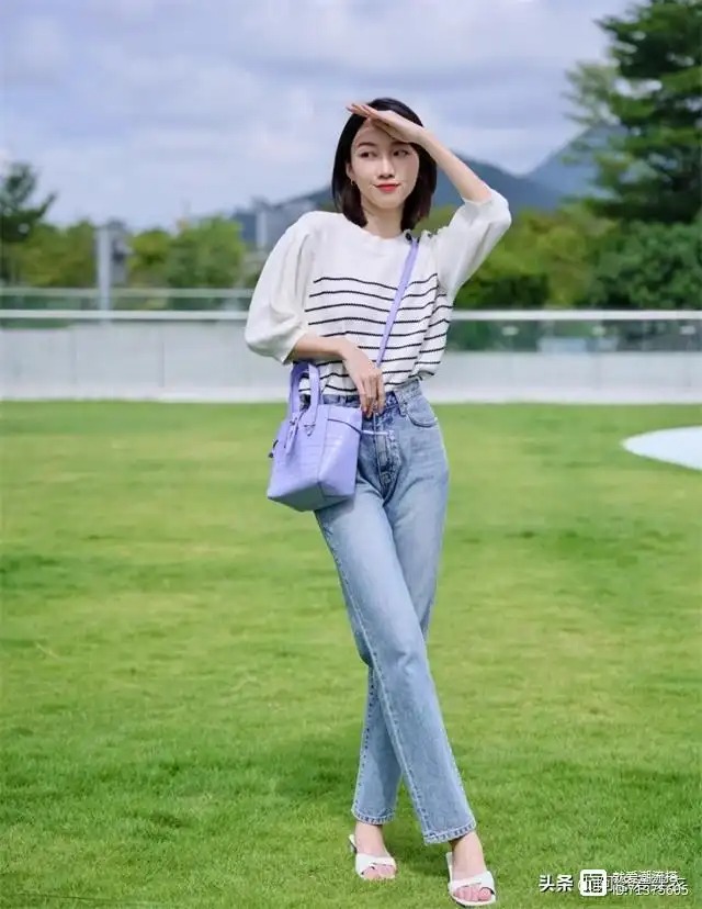 小个子的夏日,一定要讲究清爽干净。选择一件朴素的条纹T恤,用塞衣角的穿法搭配九分直筒裤,看图就知道有多显高了!