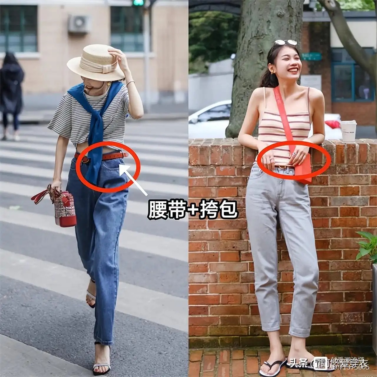不管是塞衣角还是用配饰打造腰线的穿法,都会给腰部增加一定的层次,这种穿法不太适合腰部赘肉明显的姐妹。