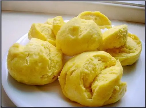 (5)蒸出的馒头,如因碱放多了变黄,且碱味难闻,可在蒸过馒头的水中加入食醋100-160克,把已蒸过的馒头再放入锅中蒸10-15分钟,馒头即可变白,且无碱味。
