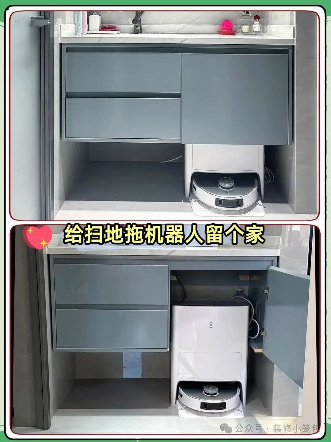 5. 卫生间:在马桶旁做窄柜,收纳卫生纸等清洁用品;在浴室柜下方安装拉篮,用于收纳盆和脚垫等物品。