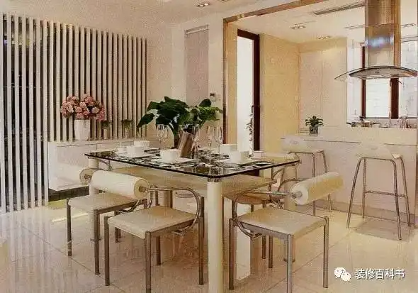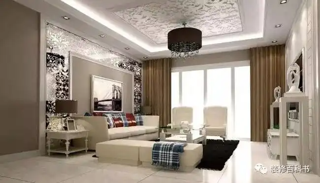 客厅内应避免梁的阻障,可在其上该其结构装饰成各类美丽的造型。如传统式拱门,天花板的延伸、绘花等,也可干脆分成两个区域。