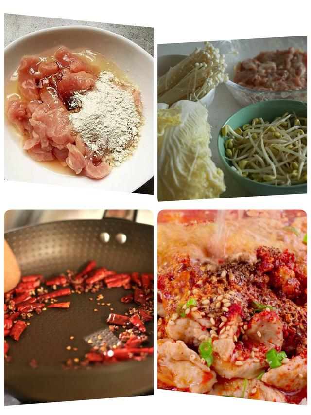水煮肉片是一道很经典下饭菜哈,以前觉得做法很复杂,自己操作之后,原来也不难。用的也是平时炒菜用的佐料,简单操作,不用下馆子,也能吃到好吃的水煮肉片。