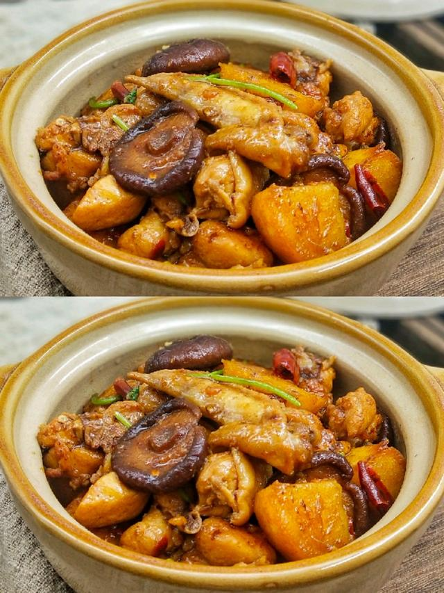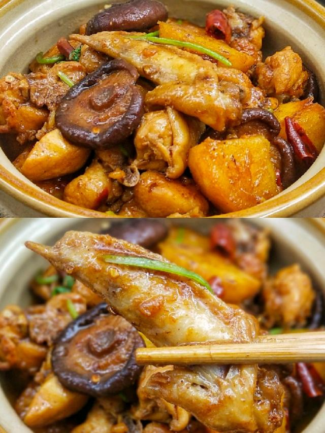 鸡肉搭配土豆和香菇一起,食材相互渗透,营养又好吃,就着汤汁都能吃一碗饭呢