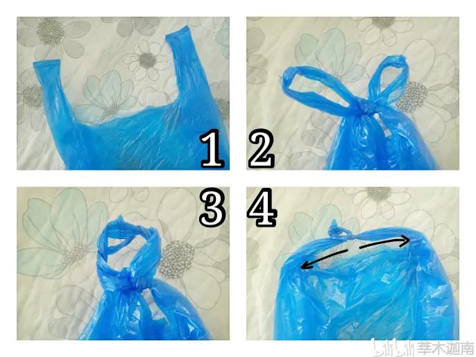 如果塑料袋很小或者想把口袋系得四四方方地,可以打一层结,然后把两个搓一搓,拧成一股,然后拉紧就可以啦!