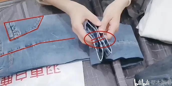 ⑤牛仔裤等外穿的裤子,折叠的时候我习惯将裤缝对齐,臀部的两个口袋也被一分为二,这样两个裤腿前面就会有一道笔直的折痕,整体对折次数根据需求调整,折叠裙子则先对折裙头,然后把裙摆往内收,最后对折。西服和衬衫的折叠同前。