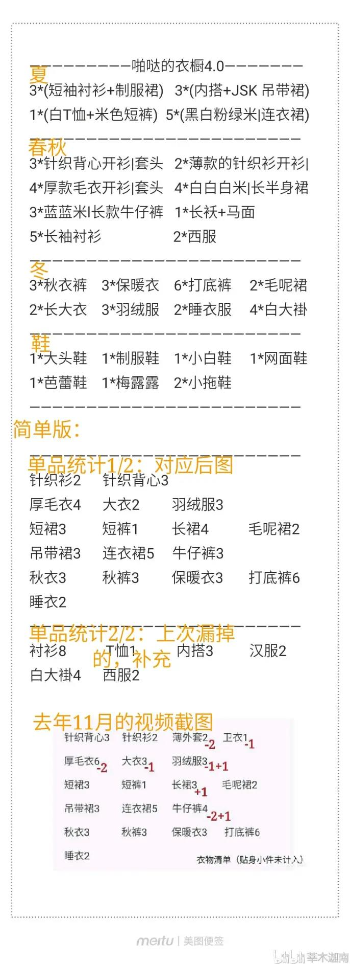 最后附一个我的衣物统计