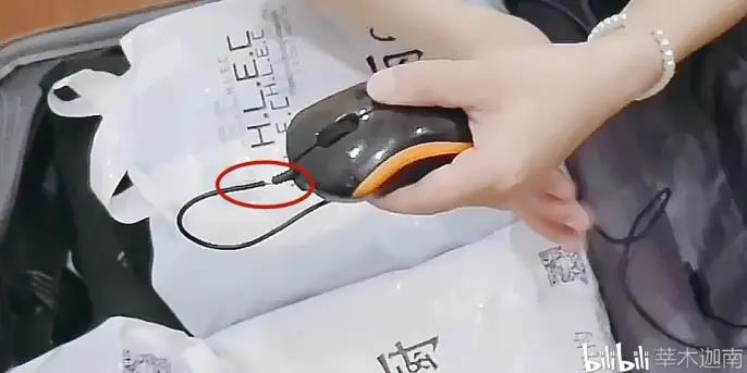 ②-③-④羽绒服的整体可以分成三部分重叠折起,因为我的口袋没有这么宽,需要叠得小一点,如果想节约空间不带电脑包,就可以把电脑塞进羽绒服里,注意有线鼠标收线的时候,线头要留出来一点点,不然线容易断。